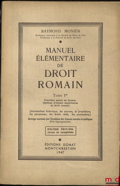 , Paris, Domat-Montchrestien 1947, in-8, br., non coupé, (4ede couv. fanée avec mq.), 551p. .