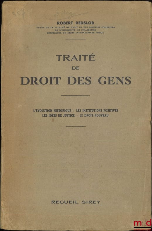 , Paris, Sirey 1950, in-8, br., partiellement non coupé, (couv. fanée, feuilles jaunies), intérieur frais, 473p.