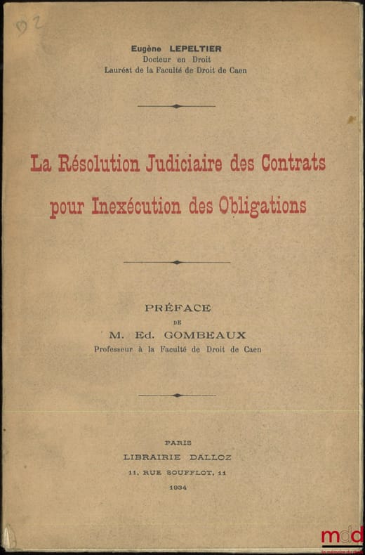 , Paris, Dalloz 1934, in-8, br., non massicoté, bon état, VII-378p.