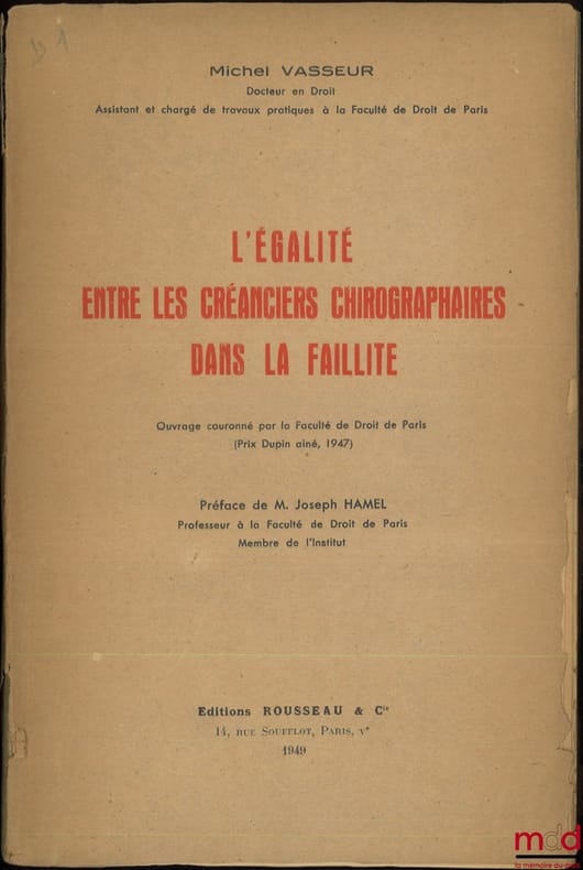 , Paris, Rousseau & Cie 1949, in-8, br., non coupé, (fragile, fané), 379p.