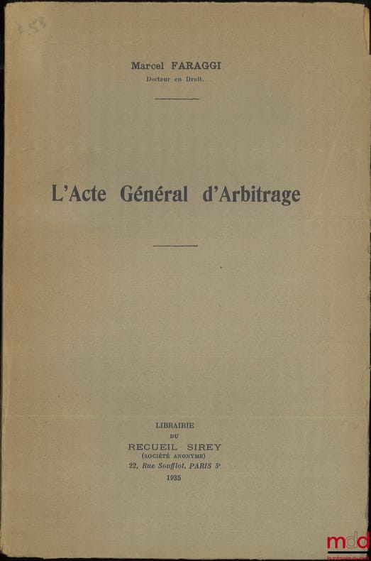 , Paris, Recueil Sirey 1935, in-8, br., non coupé, assez bon état, 294p.