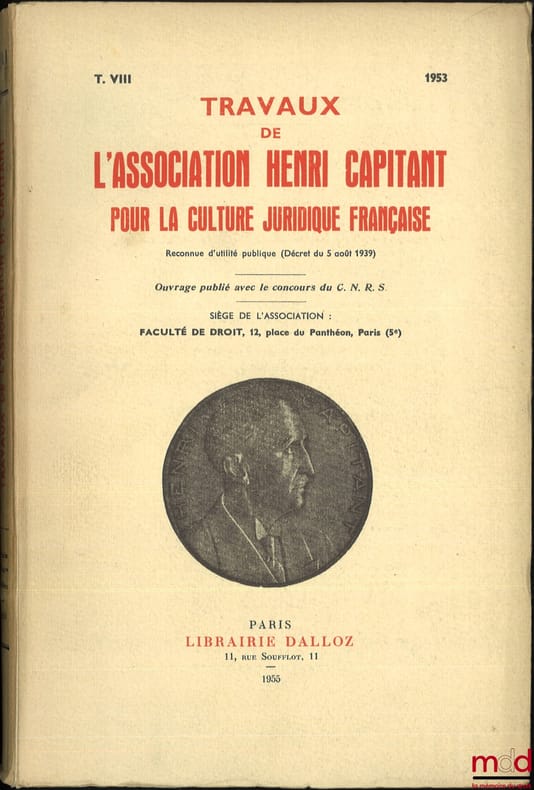 , Paris, Dalloz 1955, in-8, br., partielt non coupé, bon état, 308p.