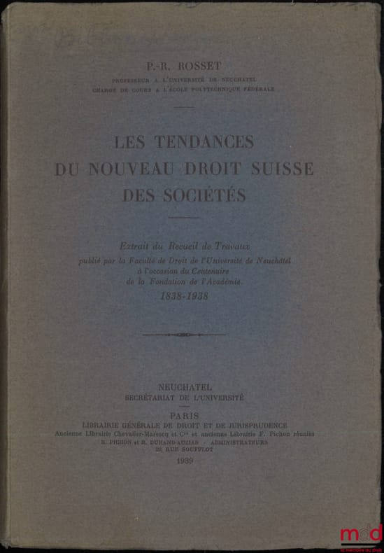 , Paris, L.G.D.J. 1939, in-8, br., partielt non coupé, (dos insolé), assez bon état, 98p.