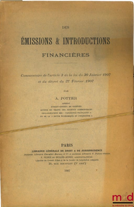 , Paris, L.G.D.J. 1907, débroché, partiellement non coupé, (couverture passée), 220p.