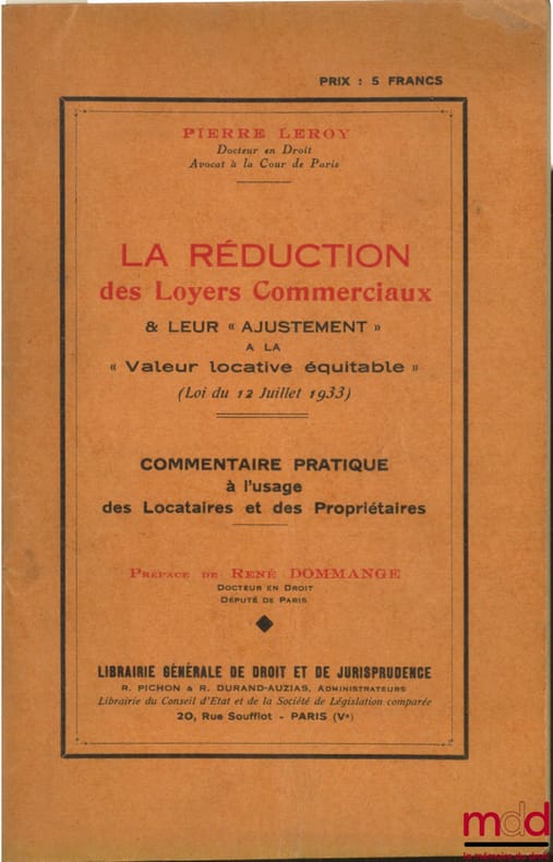, Paris, L.G.D.J. 1933, br., (couverture fanée), 51p.
