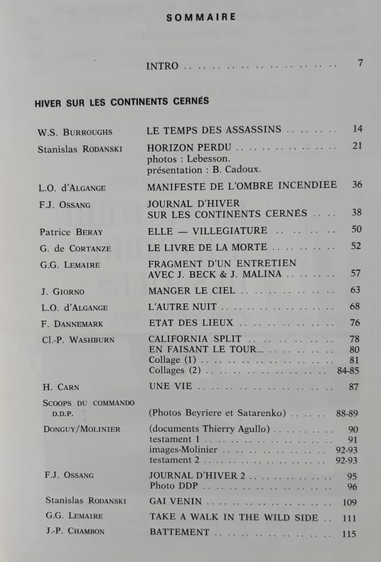 Des textes inédits de Burroughs (Le temps des assassins), Stanislas Rodanski (Horizon perdu), F.J. Ossang (Journal d'hiver sur les continents cernés), Gérard de Cortanze (Le livre de la morte), John Giorno (Manger le ciel), etc. Dernier numéro de cette bonne revue de poésie qui comptera 7 numéros en 5 livraisons. Tous nos livres sont visibles sur notre site : https://www.livrepoesie.com/