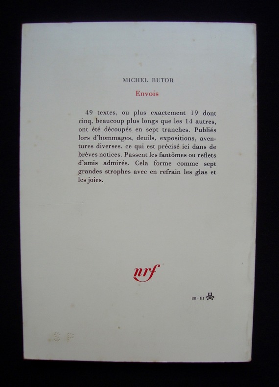 Paris : Gallimard, 1980 - in-8 broché de 124 pages - très bon état - Edition originale : Exemplaire du service de presse -