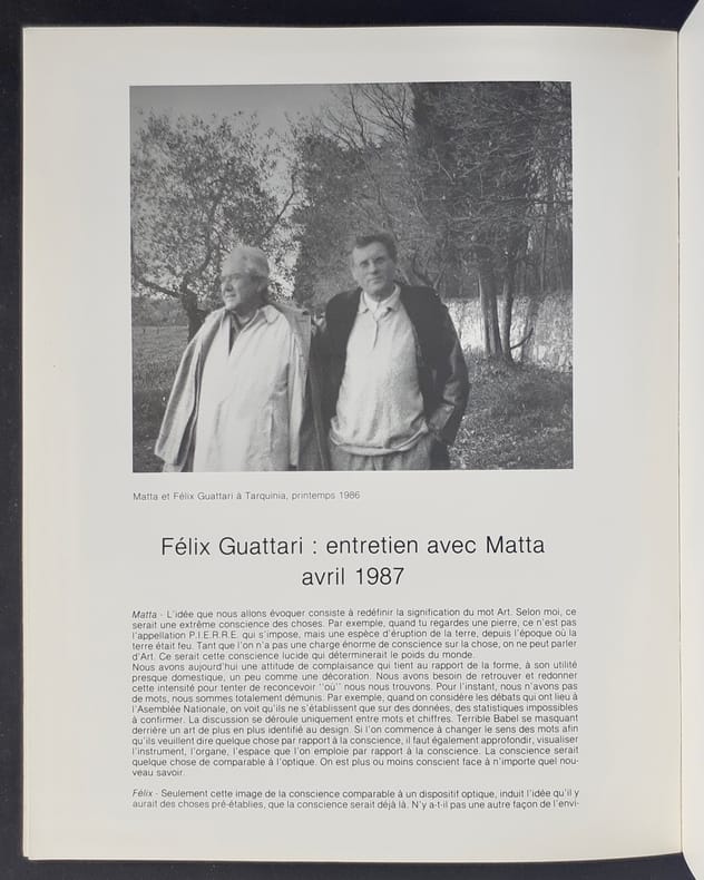 Exposition conçue et réalisée par l'association Art Contemporain au Centre culturel d'Issoire du 24 juin au 13 septembre 1987 - Grand format broché sous couverture illustrée en couleurs, 40 pages illustrées en noir et en couleurs - Avec un entretien de Félix Guattari et Matta - bon état -