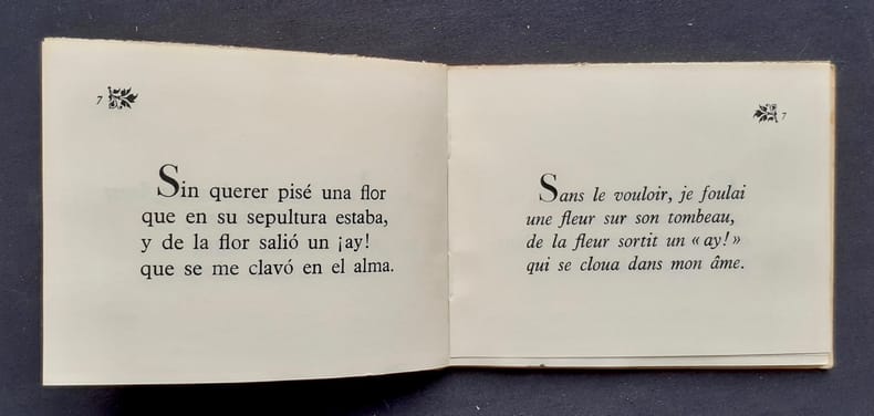 traduction par Guy Lévis Mano - Paris : GLM (Coll. "Poésie d'ailleurs" - espagnole), 1965 - 1 volume (13,4x10,5 cm), 73 pages - texte espagnol en regard de la traduction - Edition originale tirée à 1080 exemplaires numérotés sur vergé teinté - Bon état -