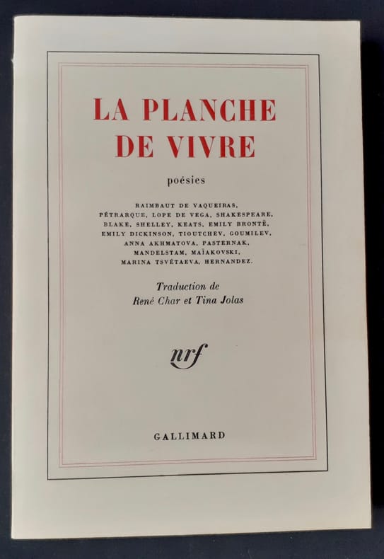 1981 traduction de René Char et Tina Jolas - Paris : Gallimard, 1981 - in-8 broché, 154 pages - texte en langues originales et traductions en français - bon état -