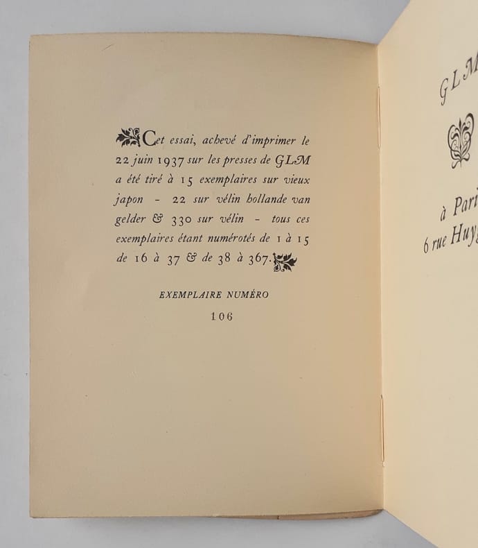 Tirage à 367 exemplaires, n°266 des 330 sur vélin. [153].