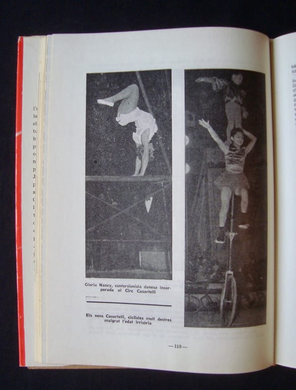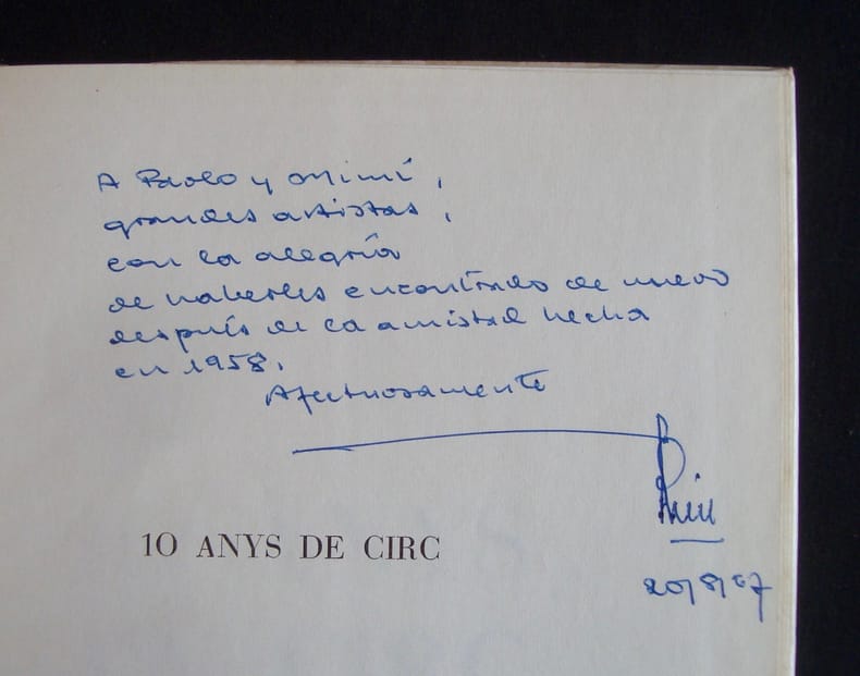 Barcelona : Edicions Circo, 1964 - un volume 17,5x23,5cm cartonné sous jaquette illustrée en deux tons, 243 pages abondamment illustrées - bon état - Envoi autographe signé de l'auteur adressé à la funambule Mimi et son père acrobate Paolo Bedini -