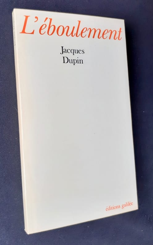 Ballast. Paris, Le Collier de Buffle, 1976.21 x 13,5 cm, non paginé. Broché, couverture rempliée, deuxième de couverture tachée sinon bon état. Édition originale, un des 500 ex. num. sur blanc Acropole. Envoi autographe signé de l'auteur à Jean-Pierre Faye. Avec : L’Éboulement, Éditions Gallilée, 1977. Envoi autographe signé de l'auteur à Jean-Pierre Faye.