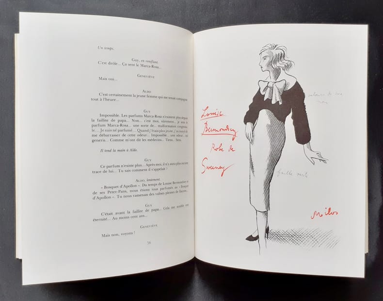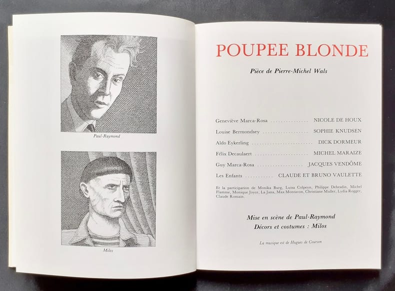 Paris : P.O.L., 1983. Un volume broché (18,3x23,5 cm) sous couverture à rabats illustrée, 111 pages sous forme d'un programme de théâtre (publicité d'époque, dessins des costumes, présentation des acteurs) dessiné par Pierre Le Tan. Pièce écrite par Patrick Modiano. Première édition. Très bon état.