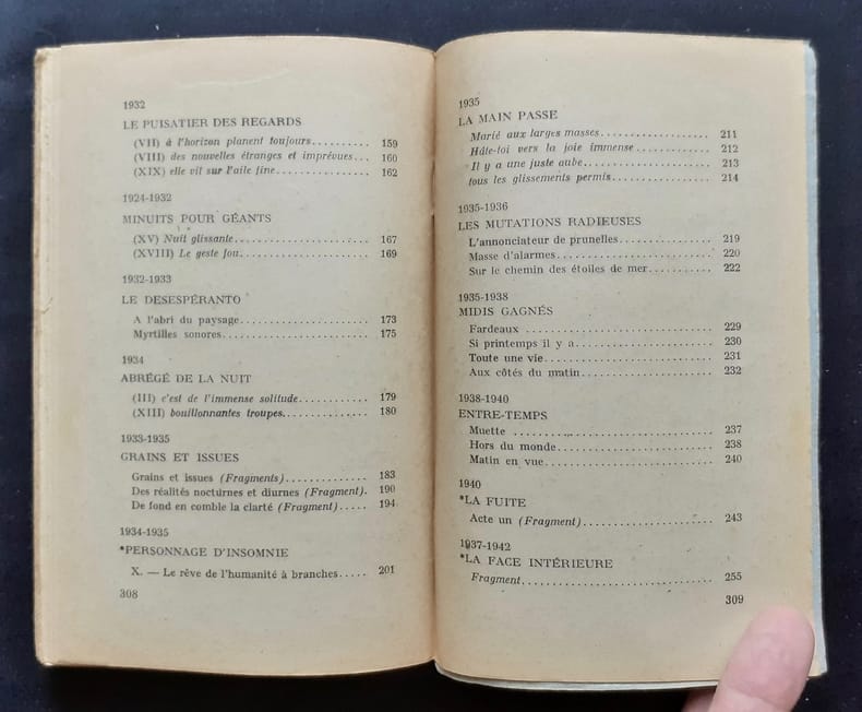 Préface de Jean Cassou. Paris : Bordas, 1947. Un volume 11,8x18,4cm broché de 311 pages. Papier uniformément jauni et légère pliure en première de couverture sinon bon état. Sous papier cristal. Anthologie de poèmes extraits des oeuvres parues entre 1916 et 1946 ainsi que 5 textes inédits : Personnage d'insomnie (1934-1935), La Fuite (1940), La Face intérieure (1937-1942), Parler seul (1945), Le Fruit permis (1946). Edition en partie originale.