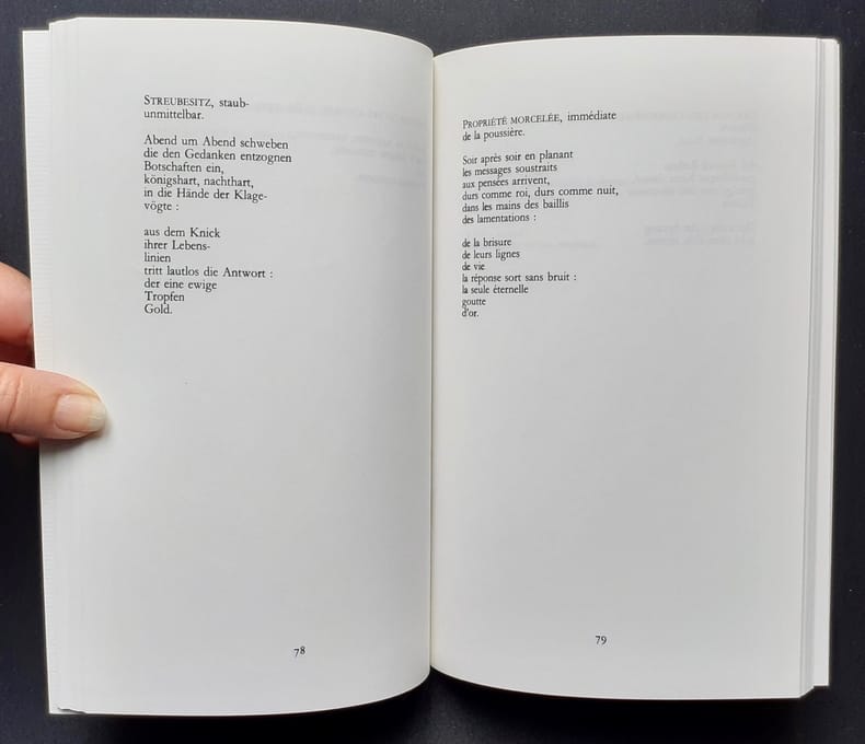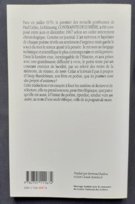 Traduit par Bertrand Badiou et Jean-Claude Rambach. Paris : Edition Belin, 1989. Un volume broché (13,5x21,5 cm), 190 pages. Texte en allemand en regard de la traduction. Edition originale de traduction tirée à 2000 exemplaires. Bon état.