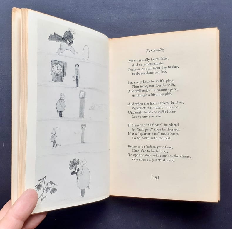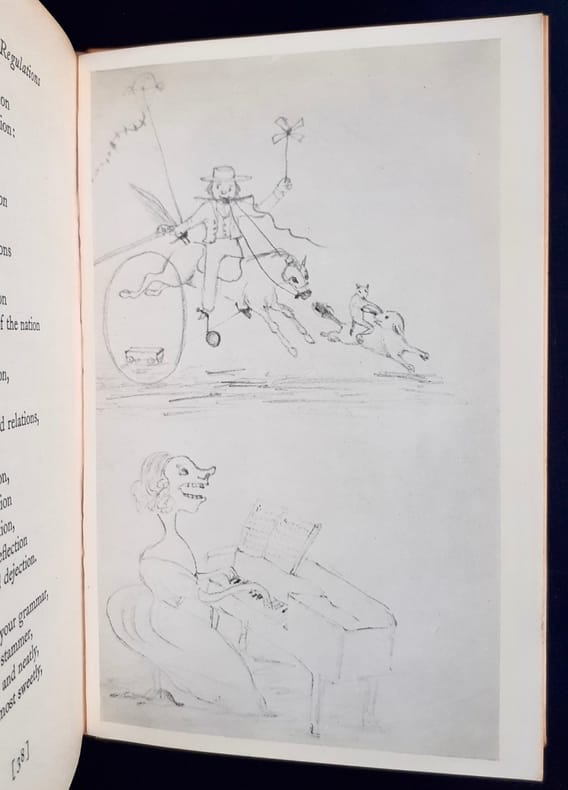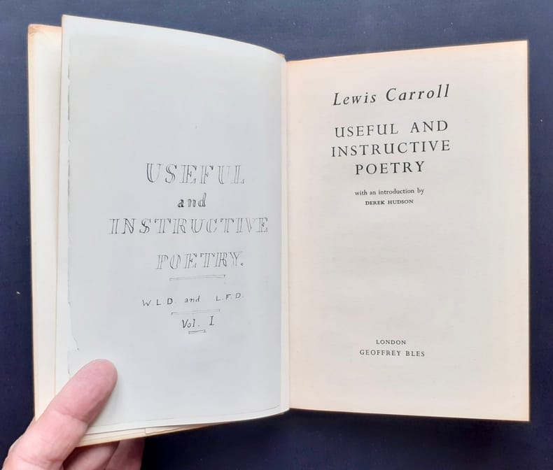 With an introduction by Derek Hudson. London : Geoffrey Bles, 1954. Un volume cartonné (12,7x19,1 cm) sous cartonnage éditeur illustré en trois tons, 45 pages. 9 dessins de Lewis Carroll en hors textes. Rousseurs au dos sinon bon état.