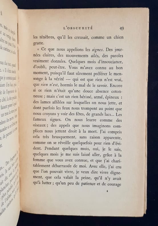 Paris : Editions Gallimard, août 1961. Un volume broché (12x19 cm), 192 pages non coupées. Edition originale en service de presse (pas de grand papier annoncé). Dos et papier uniformément jaunis sinon bon état.