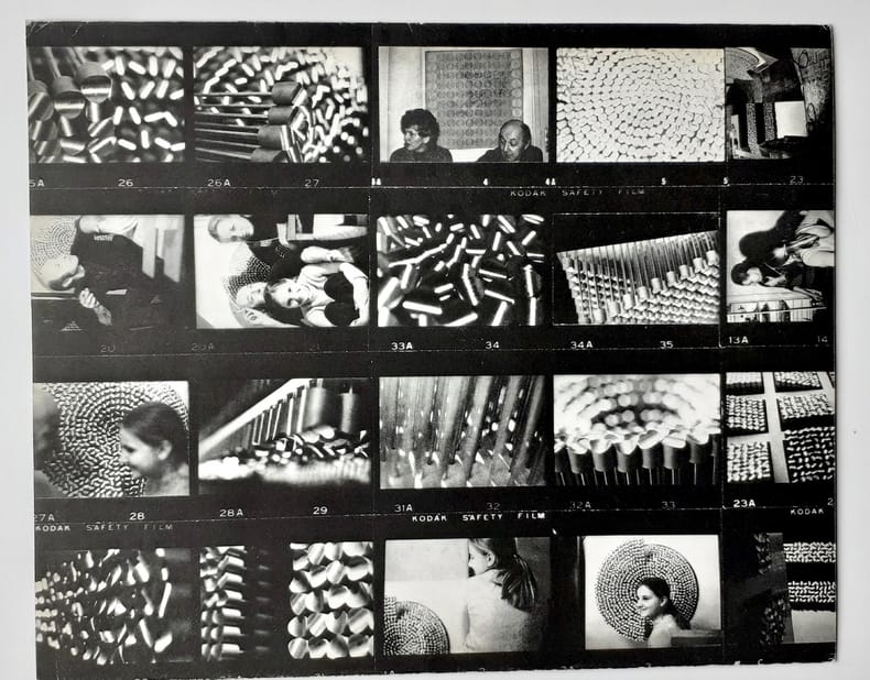 Catalogue de l'exposition présentée à Paris à la Galerie Denise René en mars 1972. Un dépliant en 3 volets (21x26 cm) imprimé recto-verso en noir. Reproductions photographiques des oeuvres en pleine page et en vignettes. Bon état.