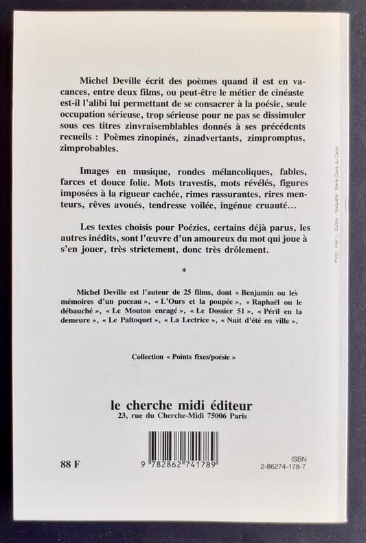 Paris : Editions Le cherche midi, 1990. Un volume broché (13,5x20,5 cm), 142 pages. Ce recueil comprend un choix de poèmes inédits et de poèmes plus anciens édités entre 1970 et 1986. Bon état.