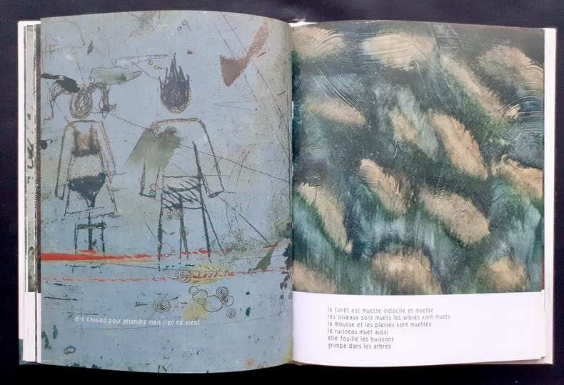 Co-édition : Arts résonances / 6 pieds sous terre, 2007. Un volume cartonné (18,5x23,5 cm), (60) pages sur papier couché. Textes et images (peintures, dessins, graffitis) par Brigitte Baumié et Pierre Duba. Bon état.