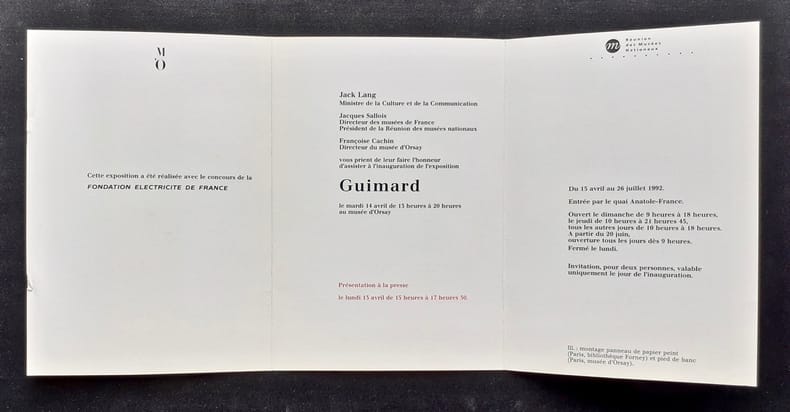 Carton d’invitation en trois volets en couleurs (10,7x15cm), dossier de presse sous chemise et Petit journal de l’exposition: 4 pages sur papier fort 32x45cm illustrées. Ensemble en bon état.