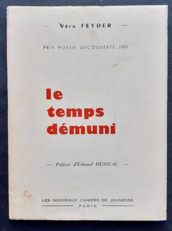 Préface d'Edmond Humeau. Paris : Les Nouveau Cahiers de Jeunesse, 1961. Un volume broché (14,2x19,2 cm), 66 pages. Bon état. Edition originale du premier livre de l'auteure tirée à 350 exemplaires : 1/300 sur bouffant supérieur.