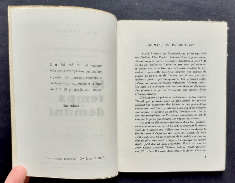 Prix poésie Découverte 1961 / Préface d'Edmond HUMEAU. Classification Dewey : 94.4-Editions numérotées