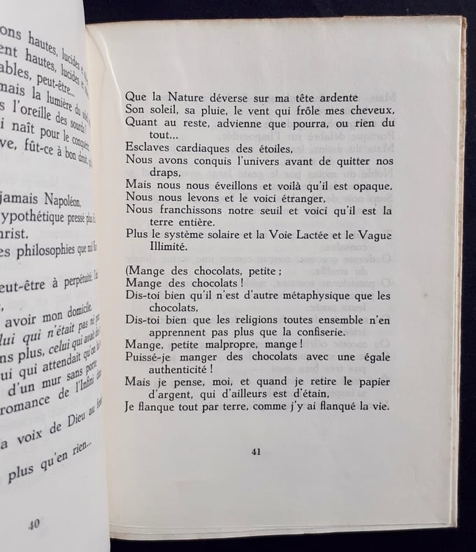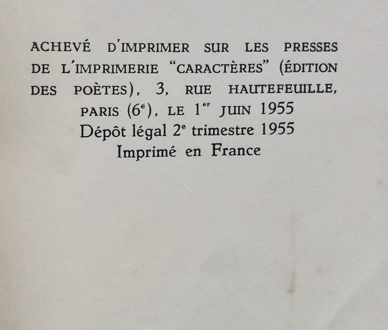 Traduit par Armand Guibert. P., Editions Caractères, coll. Planètes, 1955, in-8, br., 90 p. Edition originale de la traduction sur papier d’édition. Il n’y a eu de tiré que 10 ex. sur grand papier.