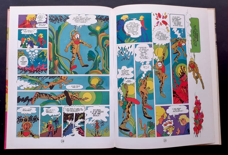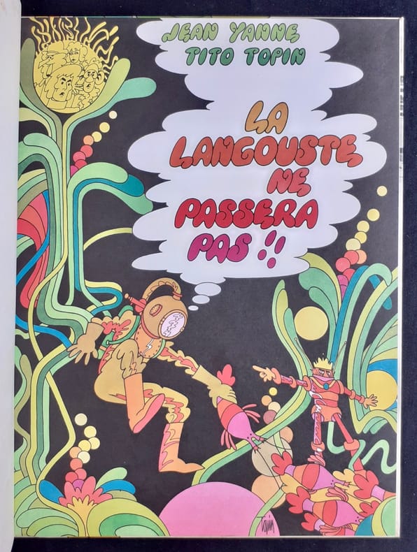 Tournai : Casterman, février 1969. Un volume cartonné sous couverture illustrée en couleurs, 48 pages illustrées en couleurs par Tito Topin. Edition originale en très bon état de cette loufoque bande dessinée psychédélique.