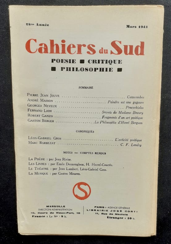 Marseille, directeur: Jean Ballard. Un volume de 64 pages. Dos légèrement défraichi sinon exemplaire en bon état.