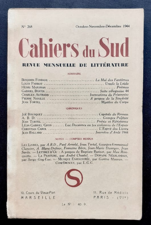 Marseille, directeur: Jean Ballard. Un volume de 130 pages. Exemplaire en bon état.