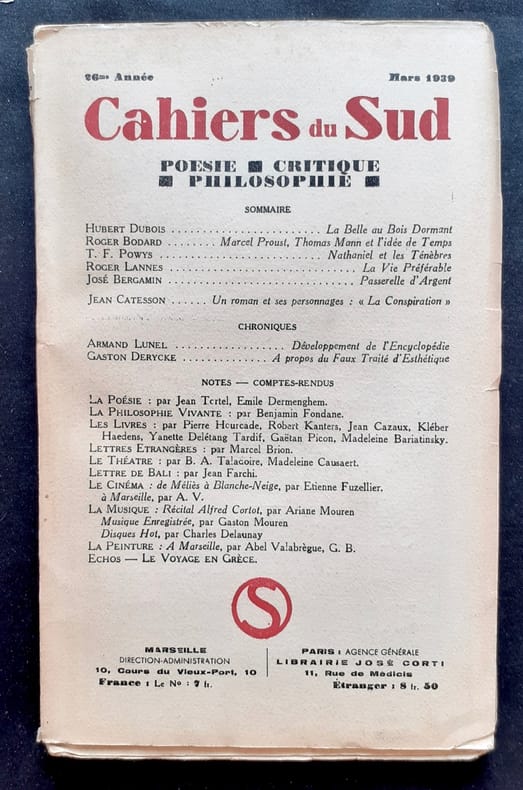 Importante revue littéraire, véritable institution fondée par Marcel Pagnol et Gabriel d'Aubarède, qui pendant près d'un demi-siècle, sous la direction de Jean Ballard, tint la dragée haute à ses rivales parisiennes, au premier rang desquelles, "La Nouvelle Revue Française".