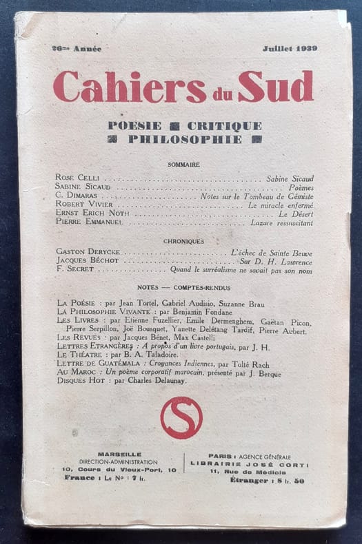 Marseille, directeur: Jean Ballard. Un volume de 88 pages. Exemplaire en bon état.