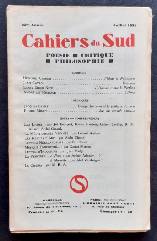 Marseille, directeur: Jean Ballard. Un volume de 87 pages. Exemplaire en bon état.