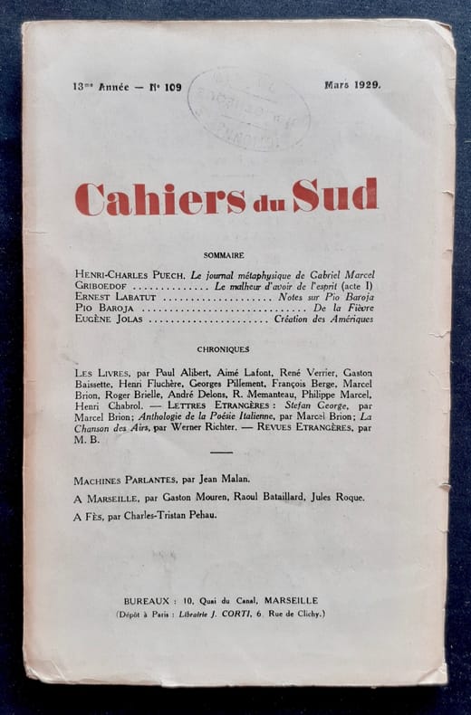 Marseille, directeur: Jean Ballard. Un volume de 80 pages. Exemplaire en bon état.