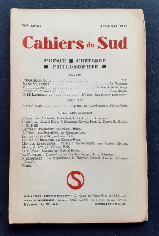 Marseille, directeur: Jean Ballard. Un volume de 90 pages. Exemplaire en bon état.