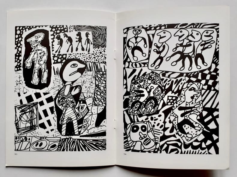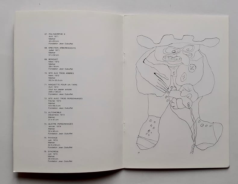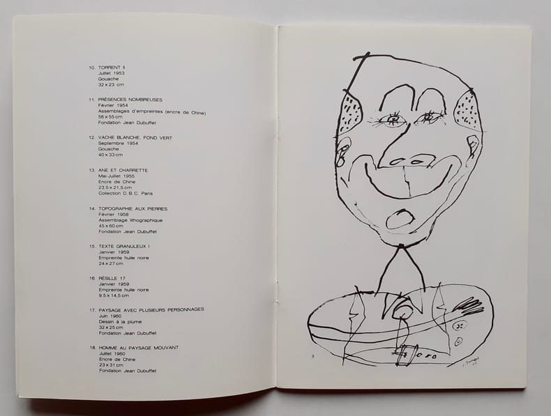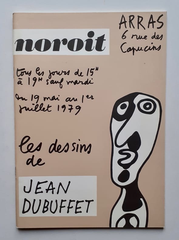 Catalogue d'exposition. Arras. Noroît. 1979. In-8° agrafé. Couverture illustrée par Jean Dubuffet. 40 pages. 28 dessins hors texte. Postface de Daniel Abadie : "Dubuffet, penseur sauvage".
