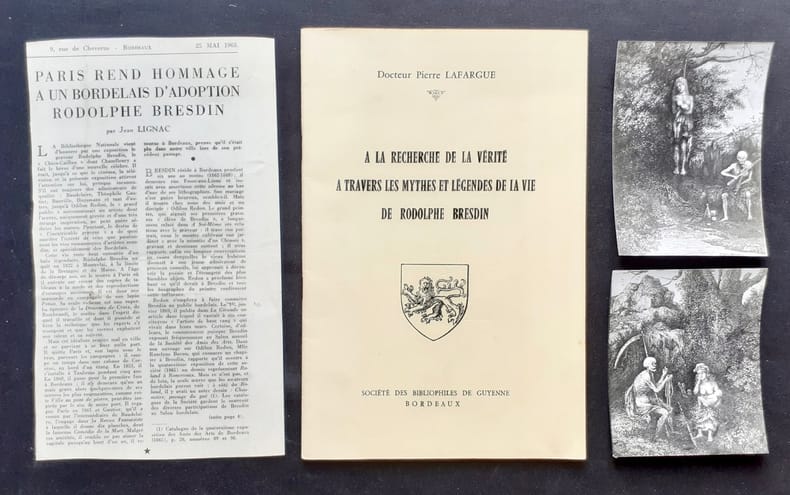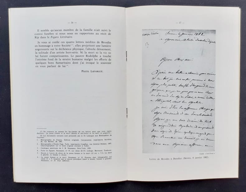 Bordeaux : Société des Bibliophiles de Guyenne. Un volume 24x15,8cm agrafé de 32 pages sur papier couché illustrées de hors texte : fac-similés de lettres et trois planches. Joints deux photographies originales et un article de presse. Bon état. Un des 100 exemplaires numérotés.