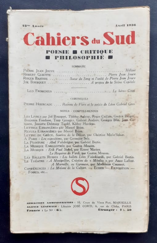 Marseille, directeur: Jean Ballard. Un volume de 80 pages. Exemplaire en bon état.