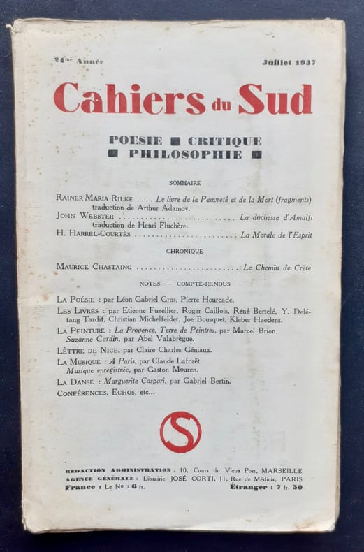 Marseille, directeur: Jean Ballard. Un volume de 80 pages. Exemplaire en bon état.