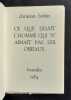 Béthune: Éditions Brandes, mai 1986. Un volume (16,5x23,5 cm) en feuilles sous couverture à rabats, (16) pages. Avec des dessins dans le texte par des élèves du collège de Norrent-Fontes (Pas-de-Calais). Seconde édition tirée à 300 exemplaires sur papier vergé ivoirejustifiée n°127. Bon état.