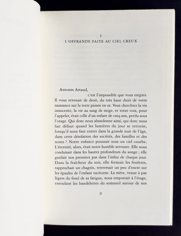 Paris, Fata Morgana, (6 octobre) 1986. 1 vol. (145 x 225 mm) de 60 p. et 2 f. Broché. Édition originale. Un des 20 premiers exemplaires sur vélin pur fil Johannot, celui-ci hors commerce.