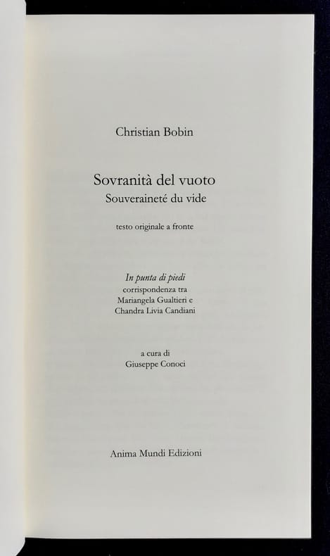 Traduit en italien par Maddalena Cavalleri. Otrante: Éditions Anima Mundi, novembre 2015. Un volume broché (12,3x20,5 cm), 69 pages. Édition bilingue français et italien. Bon état.