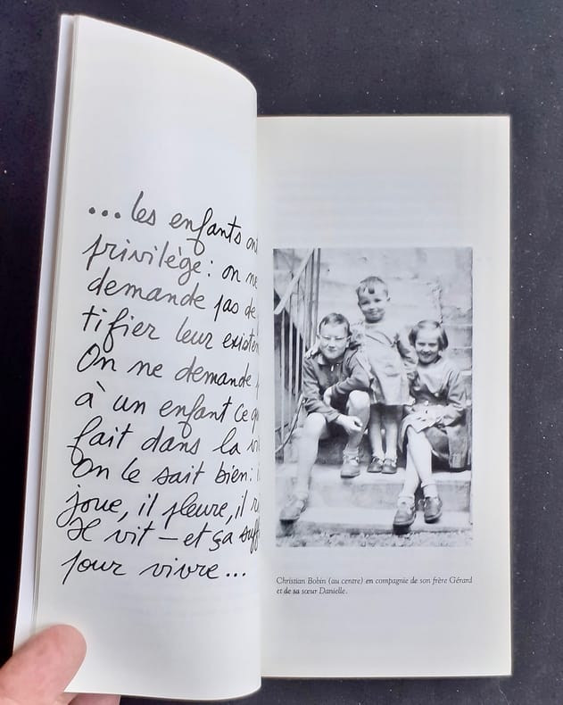 Vénissieux: Éditions Paroles d'Aube, octobre 1991. Un volume broché (10,5x21 cm), 88 pages. Série d’entretiens de Christian Bobin avec Charles Juliet, Nelly Bouveret et Judith Brouste. Avec 4 photographies dont deux portraits de Christian Bobin par Jean-Claude Couval et Julien Febvre et 4 fac-similés de manuscrits en pleine page. Édition originale sur papier courant (pas de grand papier annoncé). Bon état.