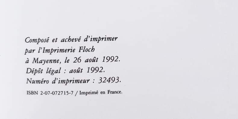 Paris: Éditions Gallimard (Collection «L’un et l’autre»), bon achevé d’imprimé daté du 26 août 1992. Un volume broché (12x20,5 cm) sous couverture à rabats, 131 pages. Édition originale sur papier courant, après 31 exemplaires sur vélin. Bon état.