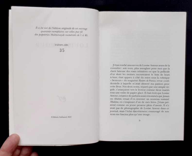 Paris, Gallimard, (9 janvier) 2004. 1 vol. (145 x 215 mm) de 142 p. et 2 f., Broché, étui. Édition originale. Un des 40 premiers exemplaires sur vélin pur fil des papeteries Malmenayde (n° 33).