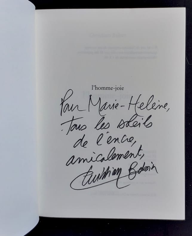 Paris: Éditions L’Iconoclaste, octobre 2012. Un volume broché (14,2x19,7 cm), 192 pages dont 16 pages en fac-similé d’une lettre manuscrite sur papier bleu. Nouveau tirage avec un envoi autographe signé de Christian Bobin. Exemplaire en bon état.
