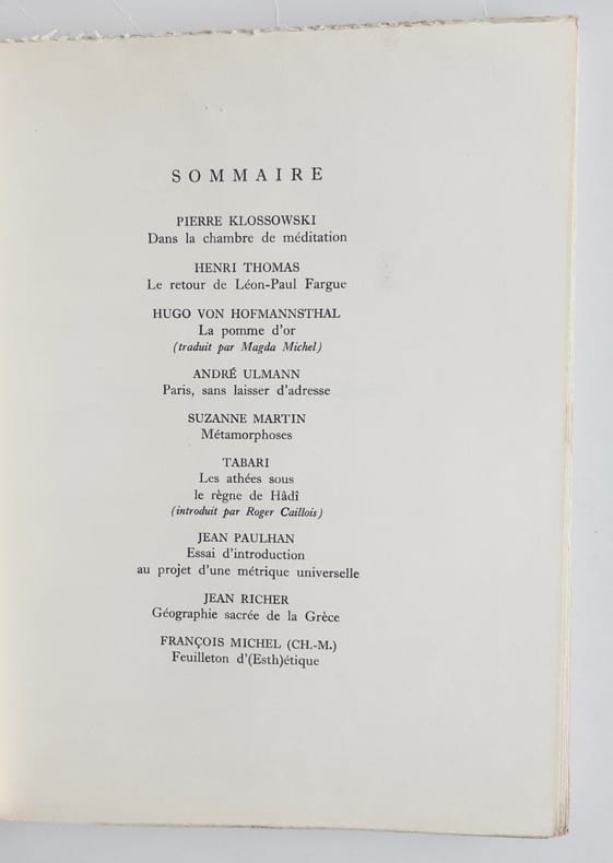 Exemplaire n°275/1800 sur bouffant édita prioux - Sommaire : dans la chambre de méditation - le retour de Léon Paul Fargue - la pomme d'or - métamorphoses etc. Classification Dewey : 70.49-Presse illustrée, magazines, revues