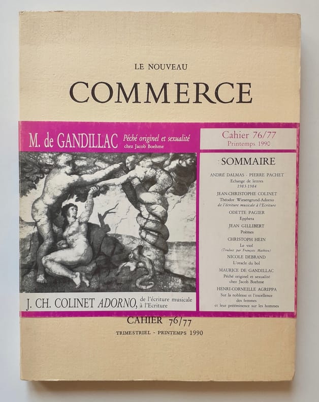 DALMAS (André). PACHET (Pierre). COLINET (jean-Chritophe). PAGIER (Odette). GILLIBERT (Jean). HEIN (Christoph). DEBRAND (Nicole). GANDILLAC (Maurice de). (Jacob Boehme). AGRIPPA (Henri-Corneille).